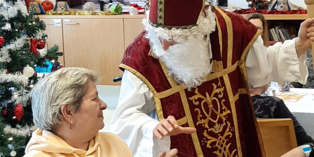 Im Pflegewohnhaus Liesing wurde auch heuer der Nikolaus feierlich begrüßt. Als der Nikolo eintraf, war die Freude bei unseren Bewohner*innen groß. Der Heilige erzählte, woher er kommt und warum er jedes Jahr am 6. Dezember unterwegs ist. Gemeinsam sangen Bewohner*innen und Mitarbeiter*innen Weihnachtslieder wie „Lasst uns froh und munter sein“ und sorgten damit für eine stimmungsvolle traditionsreiche Atmosphäre.