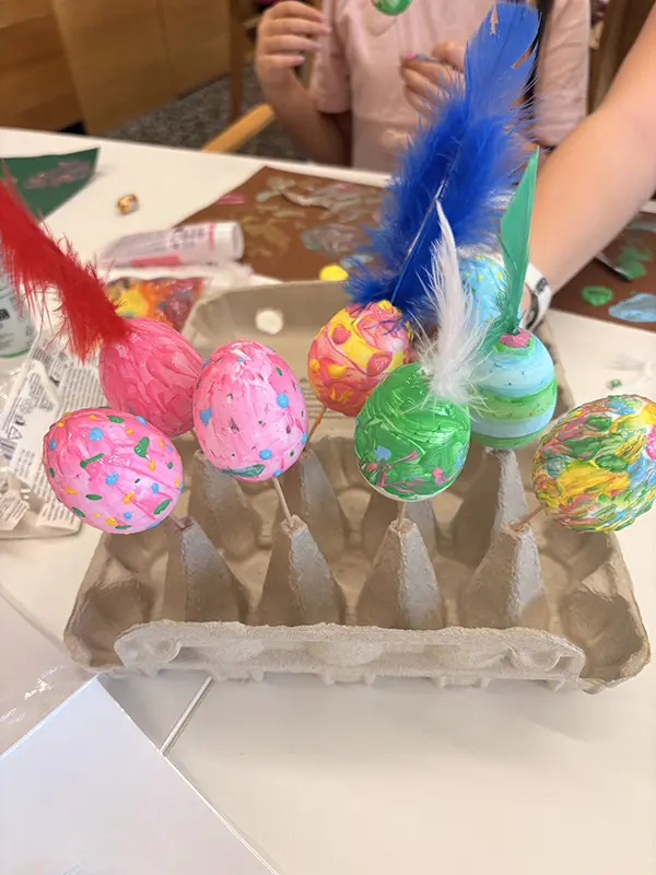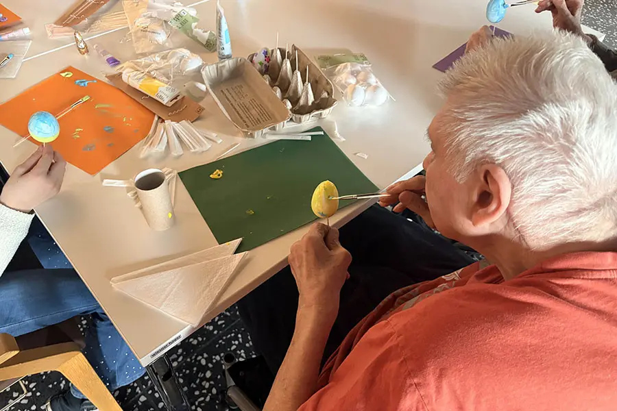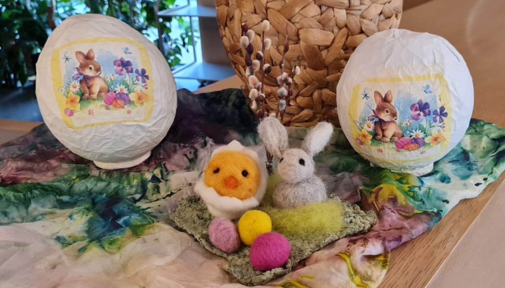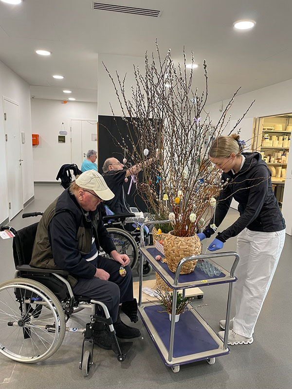 Die Bewohner*innen der Pflegewohnhäuser des Wiener Gesundheitsverbundes haben auch heuer wieder viel Mühe und Engagement in die Ostervorbereitungen gesteckt. In den vergangenen Tagen haben sie in verschiedenen Kreativgruppen gemeinsam mit den Mitarbeiter*innen der Pflegehäuser fleißig Osterdekorationen gebastelt und damit die Aufenthaltsräume und Ostersträuße verschönert. In der Pflege Liesing wurden die Bewohner*innen sogar von Schüler*innen des Gymnasiums Perchtoldsdorf beim Anfertigen der Oster-Dekorationen unterstützt.