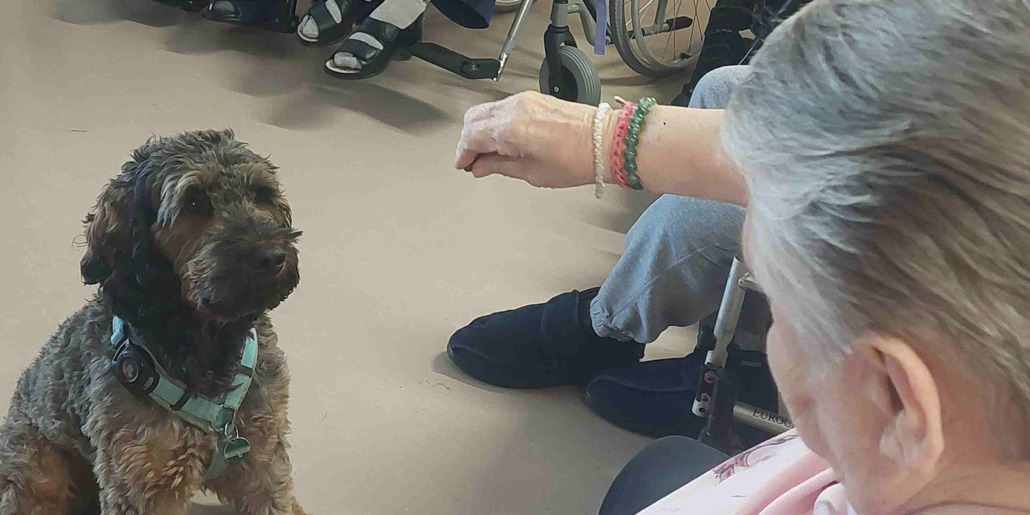 Bruno weckt bei Bewohner*innen immer wieder schöne Erinnerungen an eigene Haustiere aus vergangenen Zeiten. Und die Bewohner*innen freuen sich jedes Mal auf den nächsten Termin mit der Tiertherapeutin.